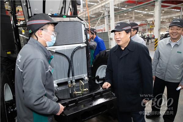 谭旭光首先来到潍柴雷沃拖拉机、收获机械智能车间调研,详细询问当前市场销售、质量管控和智能制造情况,并与正在加班加点的员工亲切交谈。