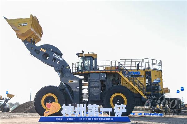 现场,“神州第一铲”35吨级超大吨位电传动轮式装载机XC9350盛大登场,整机有3层楼高、轮胎直径达3米,工作载荷接近40吨,在国内已无敌手。
