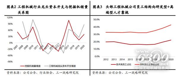 从企业微观角度来看,2013-2016年企业层面重要变化体现为去产能。一方面,从资本开支角度来看,行业头部企业放缓并减少了资本开支的节奏,从2012年头部公司便开启了收缩的政策;另一方面,考虑工程机械中游环节主要以加工和组装为主,且当时的数字化智能化水平还处于较低水平,因此对工人的依赖程度较高,因此行业也通过收缩员工规模来降低行业产能。而如今来看,工程机械头部企业本科以上学历和技术型员工占比在持续提升,推动工业数字化、产品先进化的方向前行。