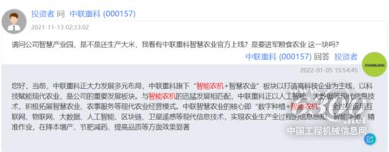 中联重科在互动易上曾回复称,公司正大力发展多元布局,中联重科旗下“智能农机+智慧农业”板块以打造高科技企业为主线,以科技赋能现代农业,是公司的重要发展板块。