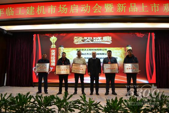 大会对2021年业绩突出的经销商进行了表彰奖励。经销商代表广西沃华工程机械有限公司总经理解桂宝、四川临沃工程机械有限公司总经理薛伟分别作了典型发言。