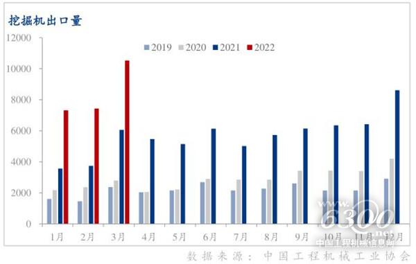 去年下半年开始,挖掘机出口一直保持着高速增长的态势,3月出口量达到本月总销量的28.4%。主要是海外受到疫情影响,挖掘机供给不足,但需求旺盛,促进出口量持续增长。但是出口量的增长无法弥补国内市场下滑缺口,所以挖掘机整体销量下降。