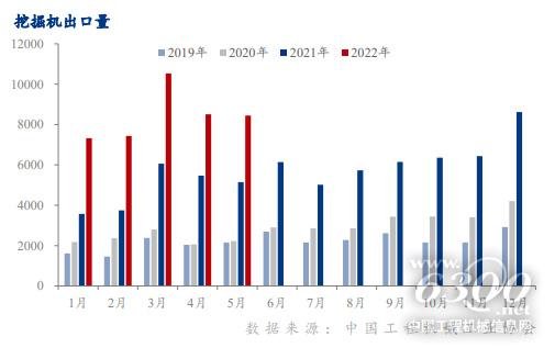 下游房地产和基建需求方面,长三角运输条件已处于逐步恢复中,是会拉动一定的市场需求,而且现在依旧有宏观利好托底,目前可以确定前期滞后的需求在6月份中下旬大概率会体现出来,但是恢复速度可能会偏慢。随着后期物流得到缓解,海运逐渐恢复,预计挖掘机出口量同比仍然保持较大的增长幅度。