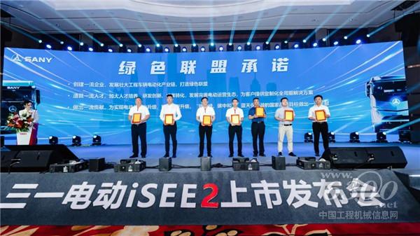 活动现场签售环节,三一电动联合三一动力能源、三一租赁、三一金融等电动生态合作伙伴,与山东鼎鑫、宜宾瑞途等客户一起,共同发起绿色联盟,为推动绿色运力发展做出庄严承诺!
