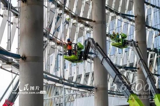 △中联重科数十台高空作业平台正助建海口国际免税城(图片来自人民网)