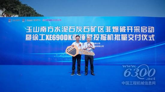 7月30日,“南方水泥玉山石灰石矿区非爆破开采启动暨徐工XE690DK MAX挖掘机批量交付仪式”在江西上饶玉山隆重举行,开启绿色矿山开采新篇章。