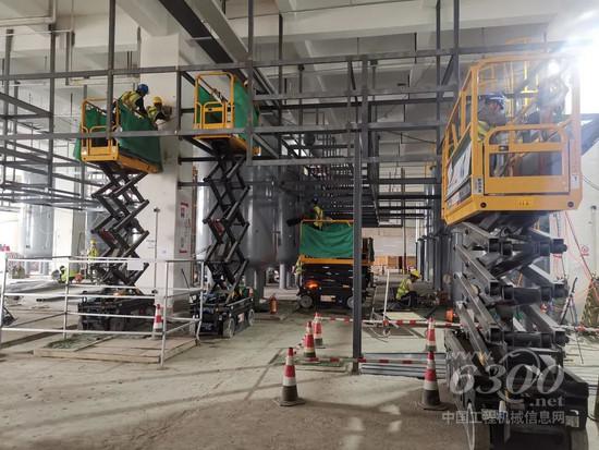 作为项目建设的主力军,柳工剪叉产品做到了该项目作业区域全方位覆盖,尤其是针对狭小区域作业,以及高空安装、焊接等更具优势。