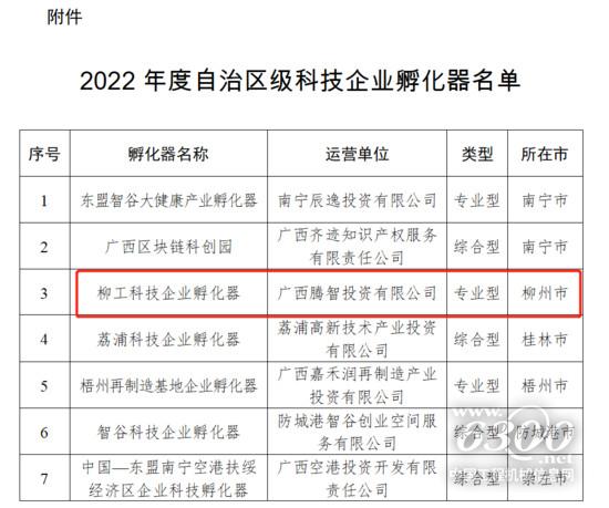 近日,自治区科学技术厅公布《2022年度自治区级科技企业孵化器名单》,柳工科技企业孵化器榜上有名,是此次柳州市唯一上榜的孵化器。
