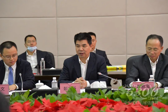 座谈会正式开始,彭光裕先生致欢迎辞。他介绍了三一集团的发展经营业绩及三一集团概况。目前,三一正经历数智化转型,将依托“电动化、数字化、国际化”的三化战略,将产品进一步推向全球。