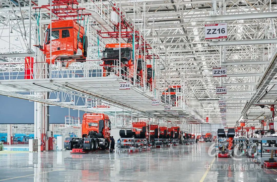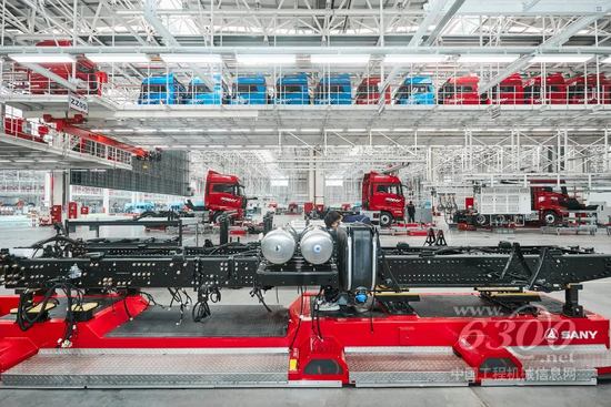 AGV小车来回穿梭,工业机器人举重若轻,机械臂灵活舞动,充斥着力量和机械美感,通过冲压、焊装、涂装、总装四大生产工艺,平均每4分钟就下线一台重卡。