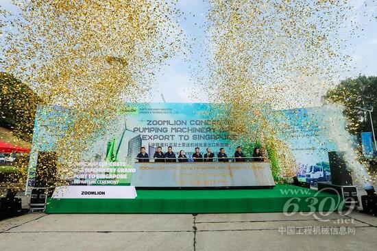 ▲中联重科混凝土泵送机械批量出口新加坡发车仪式现场