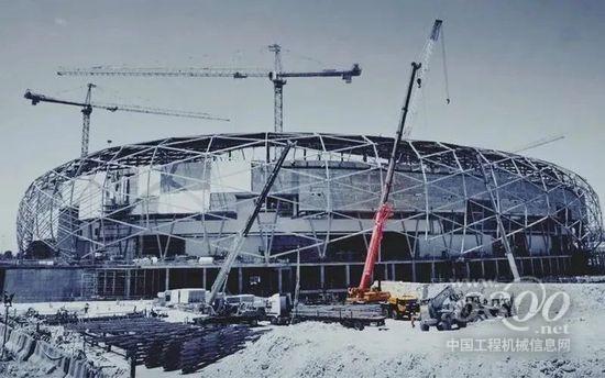图丨阿图玛玛球场 三一全地面起重机吊装钢索结构和看台