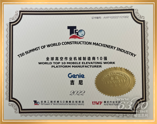 载誉前行,实力荣膺!2022年全球工程机械50强峰会吉尼斩获多项殊荣