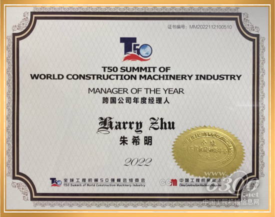 特雷克斯高空作业平台事业部大中华区商业管理副总裁兼总经理-朱希明先生荣膺 “2022 跨国公司年度经理人” 奖项。
