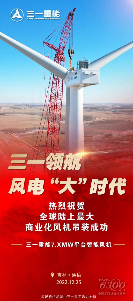 东北黑土地,见证了中国风电一大里程碑时刻。近日,在吉林通榆,三一重能7.XMW平台首台风电机组成功完成吊装。三一重能率先将7.XMW陆上风机商业化应用,创下全球陆上最大商业化风机新纪录。该风场总容量100MW,全部采用三一重能7.XMW平台风电机组,将成为全球首个单机7.XMW风机批量商业化陆上风场。