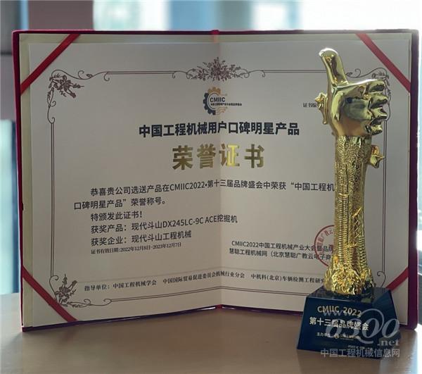 在以“破局谋变 碳寻未来”为主题的CMIIC2022中国工程机械产业大会暨品牌盛会上,现代斗山工程机械DX245LC-9C ACE凭借出色的产品实力在众多参赛产品中脱颖而出,荣获“中国工程机械口碑明星产品”称号。