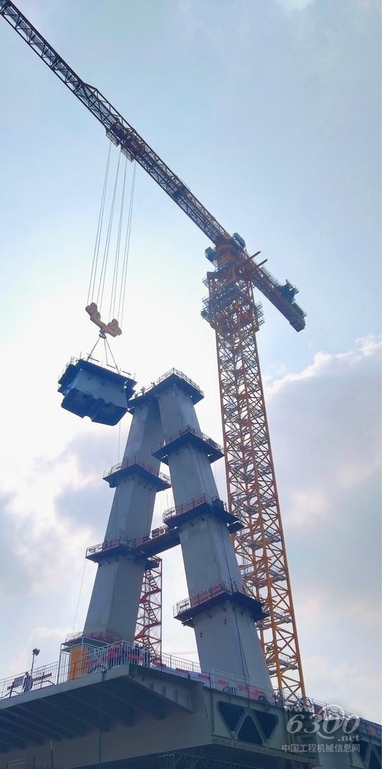 据介绍,广佛大桥水面以上90多米高钢主塔需要分节吊装,最大节段重达162吨,由R4300-200塔机参与破解吊装难题。“这台塔机最高独立高度102米,超越目前99%的在用塔机,不需要任何附墙可自动爬升,直接伸高到102米,而且塔身刚性大、不变形,可抗12级台风,抗击其他不利因素的影响,一步到位,在施工中表现稳定优异。”项目负责人为中联重科塔机的实力点赞。