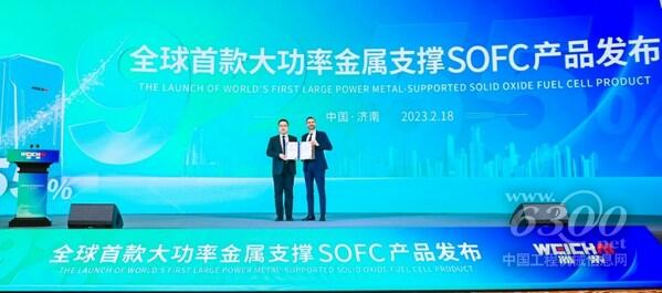 2月18日,潍柴动力股份有限公司(以下简称"潍柴")举行固体氧化物燃料电池(SOFC)产品发布会。TUV 南德大中华区防爆服务经理Ing. Kristof De Gersem为潍柴颁发了TUV南德大中华区首张固体氧化物燃料电池欧盟CE证书,标志着其电池安全性已达到欧盟要求,对于今后规范国内能源行业的安全标准具有重要意义。