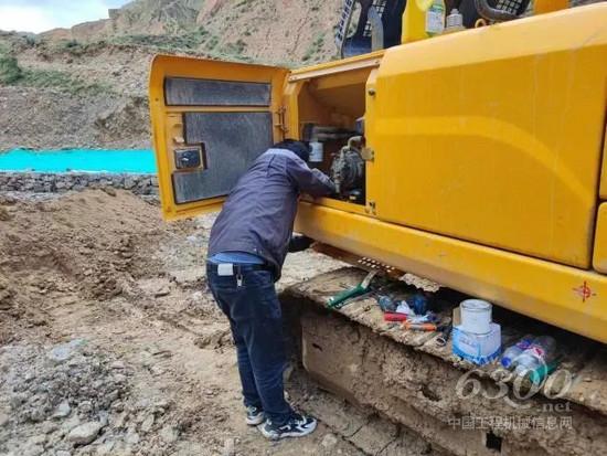 在烈日和高海拔下,瓦增仓踏上了艰难的旅程。他沿着河道前行,每一步都充满了决心和坚持,他心中只有一个目标:确保挖掘机能够及时投入施工,为客户提供高质量的服务。抵达挖机施工地点后,他迅速展开工作,快速定位并解决了挖掘机的故障。