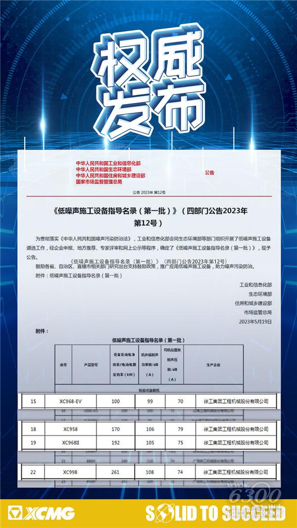 贯彻落实《中华人民共和国噪声污染防治法》,工业和信息化部、生态环境部、住房和城乡建设部、市场监督管理总局部门组织开展了低噪声施工设备遴选工作并发布《低噪声施工设备指导名录(第一批)》,凭借雄厚的技术积淀与领先的产品创新力徐工装载机再获权威认可,为徐工助力用户创造更高价值再次背书。