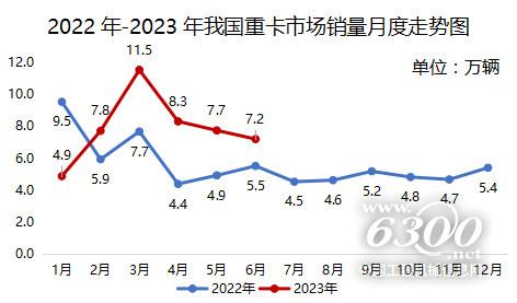 根据中汽协及第一商用车网数据,2023年上半年中国重卡行业销售同比增长25%至47.4万辆;其中6月份重卡行业销量同比增长31%至7.2万辆左右,这是今年重卡市场继2月份以来第五个月同比增长。上半年重卡行业整体呈现回暖迹象,二季度月度销量虽环比承压,但总体销量与一季度基本持平,主要系国内经济逐步复苏及出口需求旺盛所致。此外,今年以来天然气价格一路下探,油气价差扩大,天然气重卡市场连续4个月实现环比增长,连续两个月销量破万,市场持续向好趋势明显。