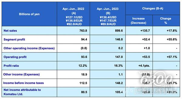 小松近日发布最新业绩报告,2023年4-6月(2023财年第一季度),合并净销售额为8996亿日元,比2022年同期(7638亿日元)增长17.8%,涨幅与去年同期持平。4-6月,小松净利润为1054亿日元,比2022年增长31%。小松表示,其致力于使供应链对外部环境的变化保持高度的弹性,特别是通过利用交叉采购和加强多源采购,并持续获取对新设备的需求。