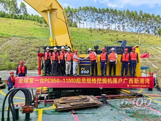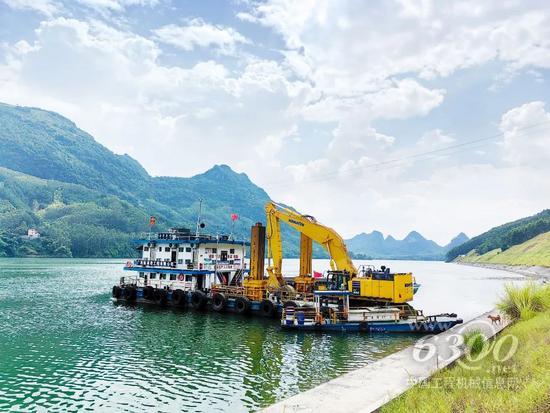 日前,小松首台PC950-11M0船用规格挖掘机顺利交付广西南宁某大客户,并被投入到了广西柳江河道疏浚及平陆运河工程的建设中。这台PC950-11M0的机身固定在船体上,且配置了9m-11m加长臂,以用于水下挖掘及破碎作业,这也是小松PC950-11M0挖掘机首次被用于船上作业工况,该设备一经交付使用便得到了用户的高度认可,现已陆续接到周边客户的多台船用规格订单。