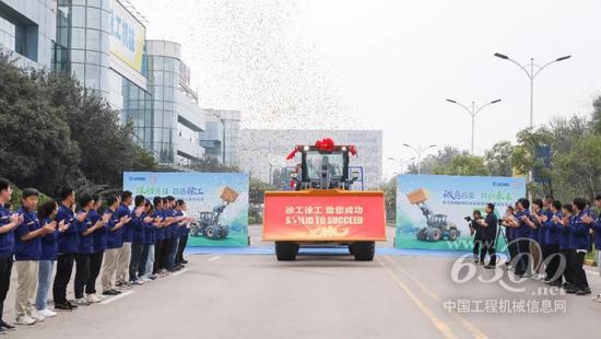 秋风送爽,徐工纯电动装载机身披红花、严阵以待。由徐工机械副总裁蒋明忠,铲运事业部总经理、党委书记蒋立俏,江苏诚意集团党委书记、总经理曹永等双方领导、职工100余人共同见证