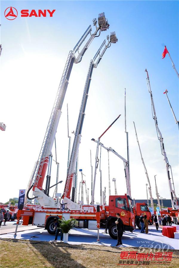 三一登高平台消防车此次带来35米和55米产品,满足城市6-11层及以下居民住宅的消防救援需求,解决老旧城区道路狭窄、空间受限的救援及灭火难题。
