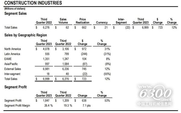 近日,卡特彼勒公布第三季度财报,2023年第三季度卡特彼勒实现营收168亿美元,同比增长12%;实现净利润约27.94亿美元,同比增长36.89%。卡特彼勒表示营收增长主要得益于合适的价格与高销量。