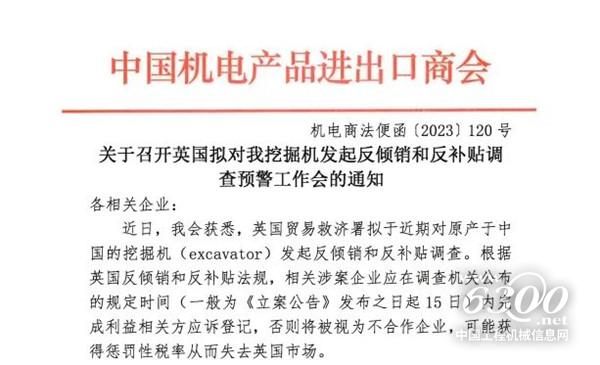 最新消息!英国拟对我国挖掘机发起反倾销和反补贴调查!