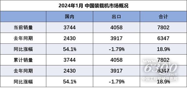 2024年1月装载机国内市场销量3744台,同比增长54.1%