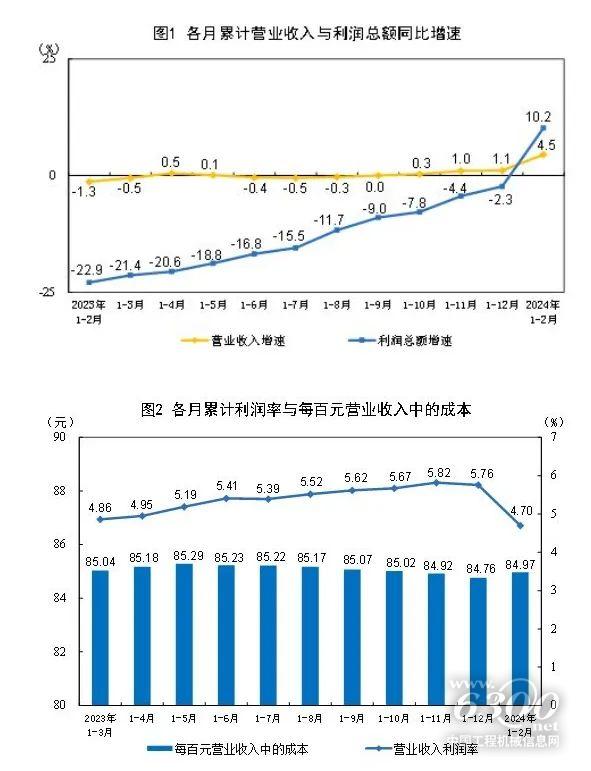1—2月份,规模以上工业企业实现营业收入19.44万亿元,同比增长4.5%;发生营业成本16.52万亿元,增长4.6%;营业收入利润率为4.70%,同比提高0.24个百分点。