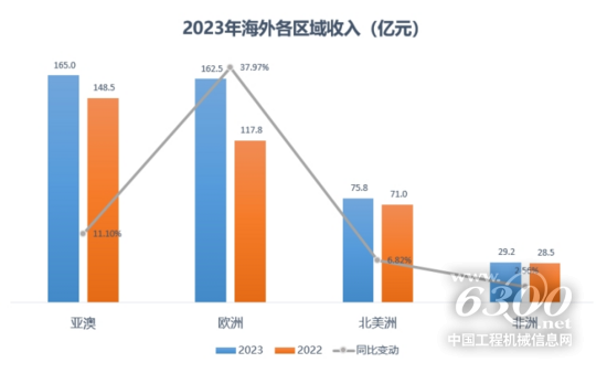 从区域来看,截止2023年底,三一重工海外产品销售已覆盖180多个国家与地区,欧美已成为海外增长最快的区域