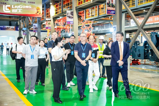 在柳工装载机智能制造数字中心及装载机智能装配线,来宾们亲眼目睹大国重器“智能智造”过程,了解“海、陆、空”立体物流配送模式等、机械手等先进设备的运用,彰显柳工在精益化、智能化生产等方面的实力。