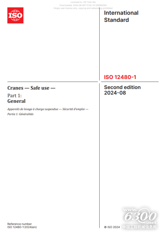 中联重科主导修订的国际标准ISO 12480-1《起重机 安全使用 第一部分:总则》正式出版发行
