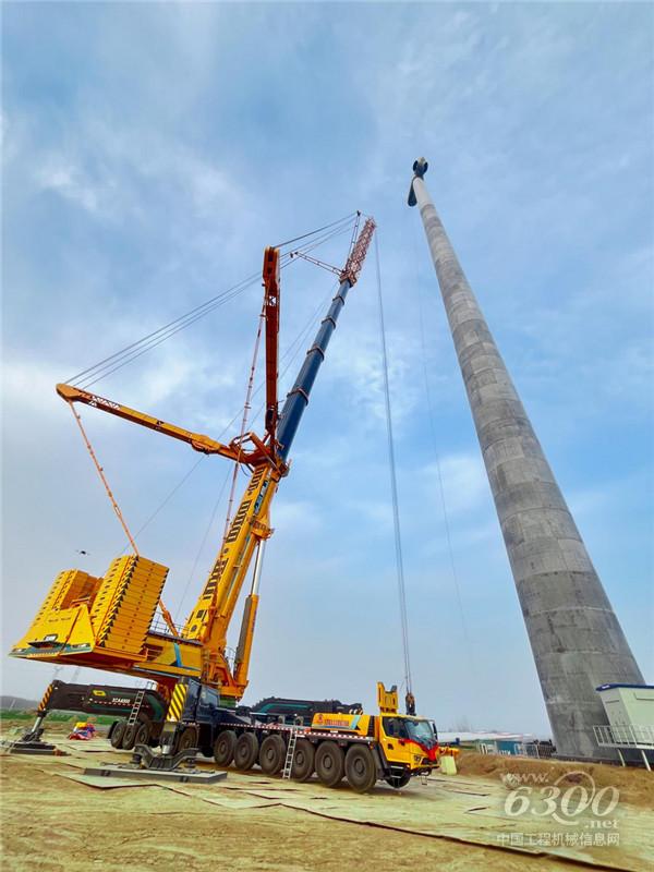 (图为XCA4000将重达70吨的塔筒吊至130米高度)