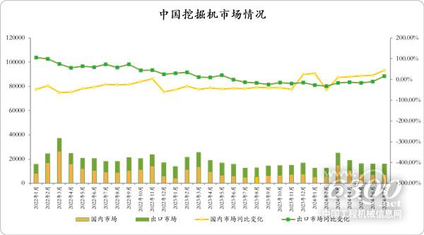 按照CME观测数据,2024年1—9月,中国挖掘机械整体销量同比下降1%左右,降幅持续收窄。其中,国内市场同比增长超过8%,出口市场销量同比下降8%。数据环比1—8月均有改善。