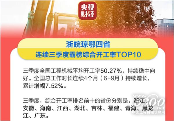 1.三季度全国工程机械平均开工率50.27%,持续稳中向好;
