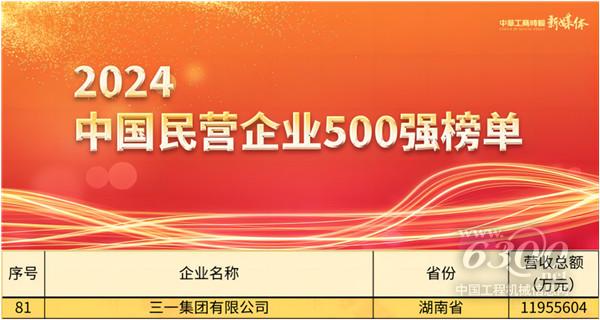 5.民企500强榜单,三一集团蝉联工程机械行业“双料冠军”;