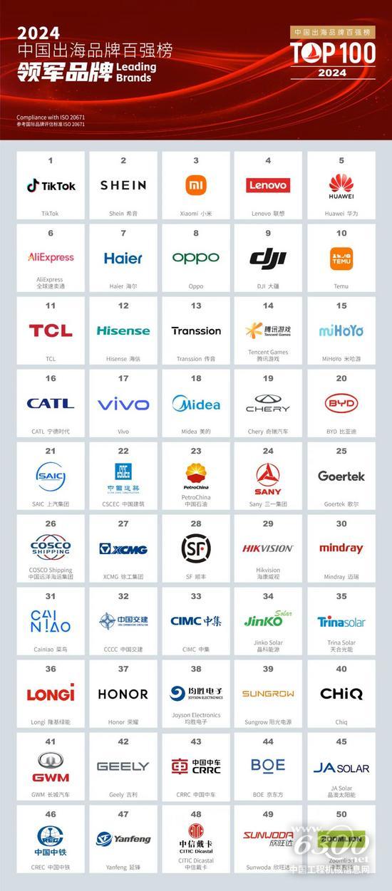 近日,《中国出海品牌百强榜》(以下简称《百强榜》)发布,三一集团凭借品牌全球化的出色表现,荣列“领军品牌50强”第24位,为工程机械行业排名最高品牌。