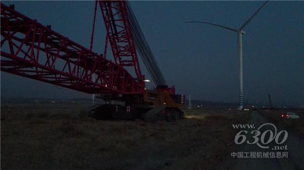 11月20日凌晨,现场风速降到了安全作业条件以内,吊装团队连夜完成了叶片吊装。SCC18000TM-8也开始拆臂转场,经过4小时,主机带4节臂架行走至2公里外的下一作业面,展开准备工作。