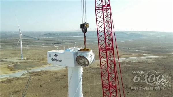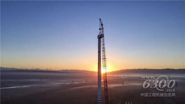 11月16日早晨7:15,经过4小时有条不紊地作业,SC18000TM-8顺利完成了5节塔筒的安装,将机舱稳稳地压在了塔筒之上。