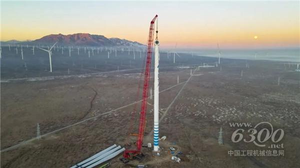 11月21日凌晨,新疆华电达坂城50万千瓦风电项目二标段,首台10MW风机由三一SCC18000TM-8完成全部吊装工作。从11月11日开始组装、15日起杆、16日凌晨开始第一节塔筒吊装,SCC18000TM-8及施工、服务团队一路马不停蹄、挑灯夜战,抢占低风窗口,在预定时间内完成了该机位的所有安装工作。