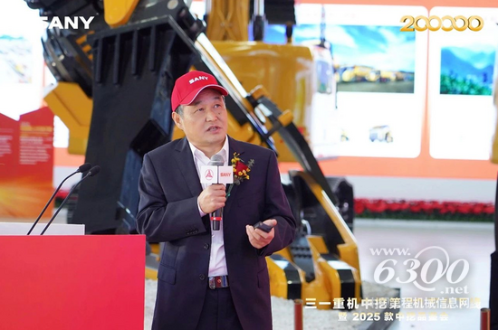 三一重机中挖研究院院长朱传宝进行了2025款中挖全面升级推介,包括11项关键性能升级、全机型油耗降低5~10%、40项质量改善,可靠性显著提升、特殊工况和高原工况再生时间延长3倍等4大升级,以及20t族群、24t族群、30t族群、新品SY215C-SA、多样化产品系列、智能遥控挖机等产品,以全面升级开启全新征程。