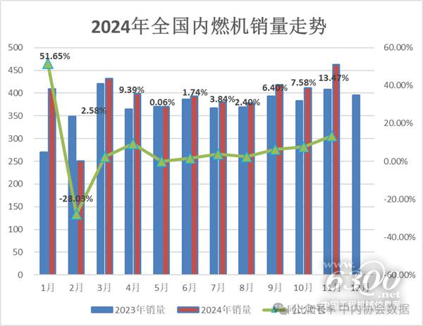 2024年11月内燃机销量462.99万台,同比增长13.47%;1-11月累计销量4302.22万台,同比增长5.50%。(较1-10月涨幅增加0.90个百分点)。