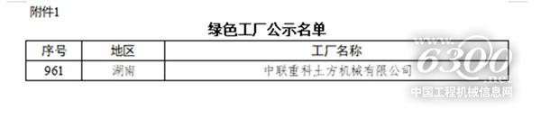 4.中联重科第五家工厂通过认定成为国家级绿色工厂;
