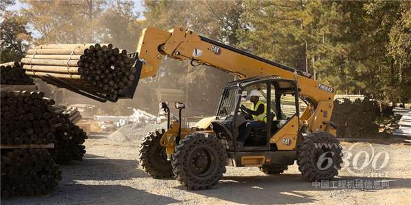 ▲ 卡特彼勒TH1055伸缩臂叉装车正在作业