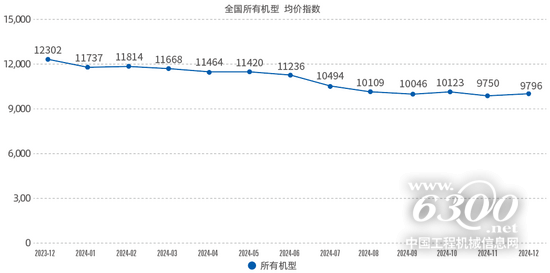 根据上报数据统计计算,2024年12月升降工作平台租金价格指数仍然处在10000点以下,环比基本持平,各机型租金价格指数环比走势波动很小,涨跌幅度都不超过正负2%。与之大相径庭的是同比租金价格指数,呈持续下降态势,2024年12月升降工作平台租金价格指数同比下降20.6%,所有机型租金价格指数同比出现普遍下滑,其中≤6m机型同比降幅最小为13.2%,40m以上机型同比降幅最大,达到26.2%。