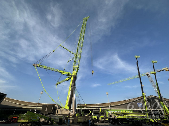 5月12日,在长沙国际会展中心中联重科展区,作为本次长沙展中最高、最大的设备,中联重科全球最大吨位4000吨级全地面起重机已经高高耸立在现场。随着展期的临近,全球高端装备制造龙头企业——中联重科9大类、近百台设备已基本完成进场组装,将全面展示中联重科在高端化、智能化、数字化、绿色化等方面的创新成果。